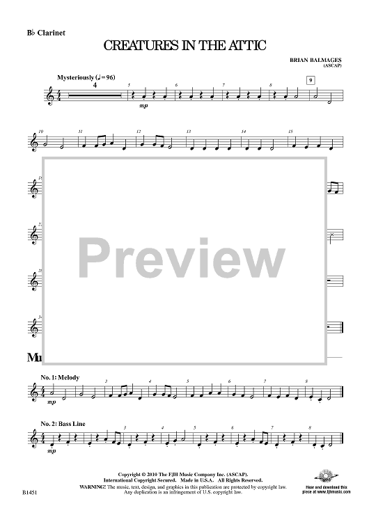 Digital Sheet Music for Creatures in the Attic - Bb Clarinet by Brian Balmages scored for Beginning Band; id:415181