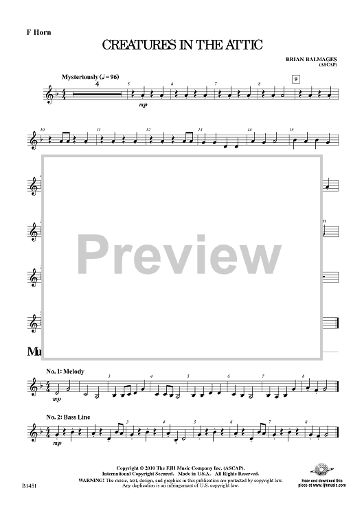 Digital Sheet Music for Creatures in the Attic - F Horn by Brian Balmages scored for Beginning Band; id:415187