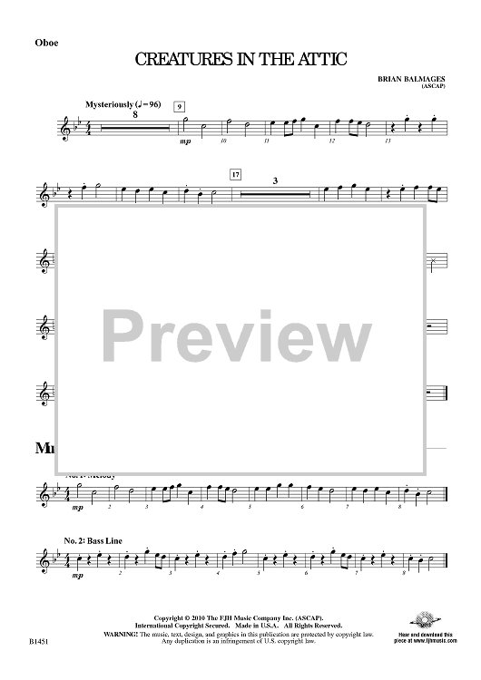 Digital Sheet Music for Creatures in the Attic - Oboe by Brian Balmages scored for Beginning Band; id:415179
