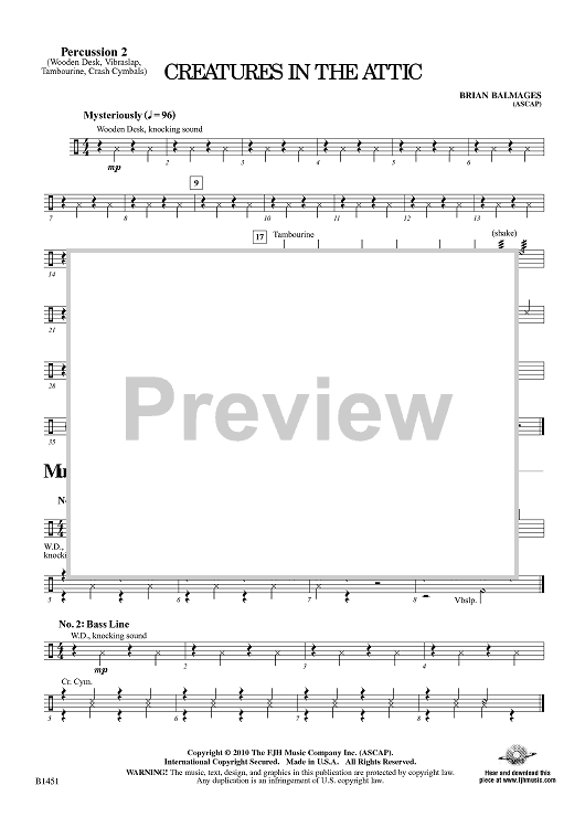 Digital Sheet Music for Creatures in the Attic - Percussion 2 by Brian Balmages scored for Beginning Band; id:415194