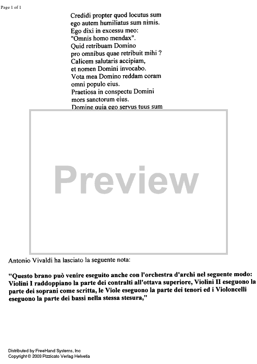 "Credidi (Salmo 115 [116]) - Lyrics" Sheet Music by Antonio Vivaldi
