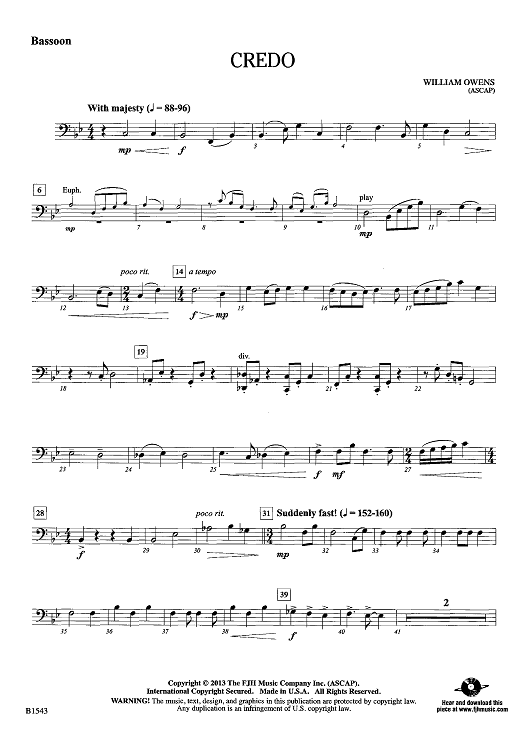 Digital Sheet Music for Credo - Bassoon by William Owens scored for Concert Band; id:442118
