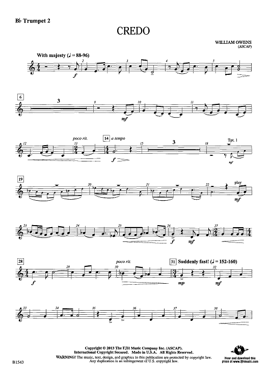 Digital Sheet Music for Credo - Bb Trumpet 2 by William Owens scored for Concert Band; id:442127