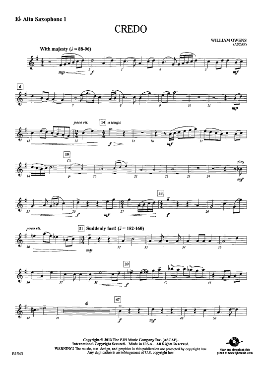Digital Sheet Music for Credo - Eb Alto Sax 1 by William Owens scored for Concert Band; id:442122