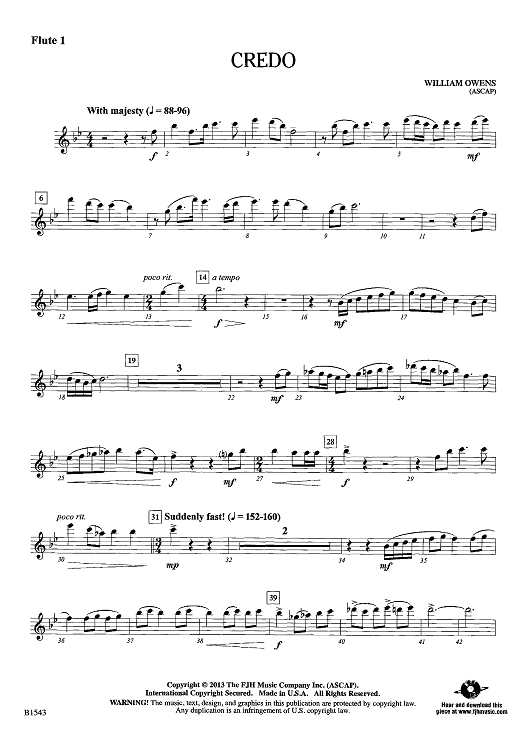 Digital Sheet Music for Credo - Flute 1 by William Owens scored for Concert Band; id:442115