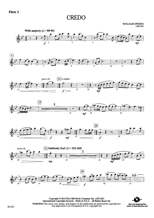 Digital Sheet Music for Credo - Flute 2 by William Owens scored for Concert Band; id:442116