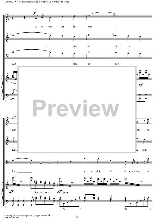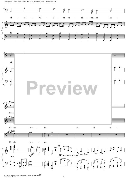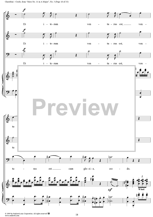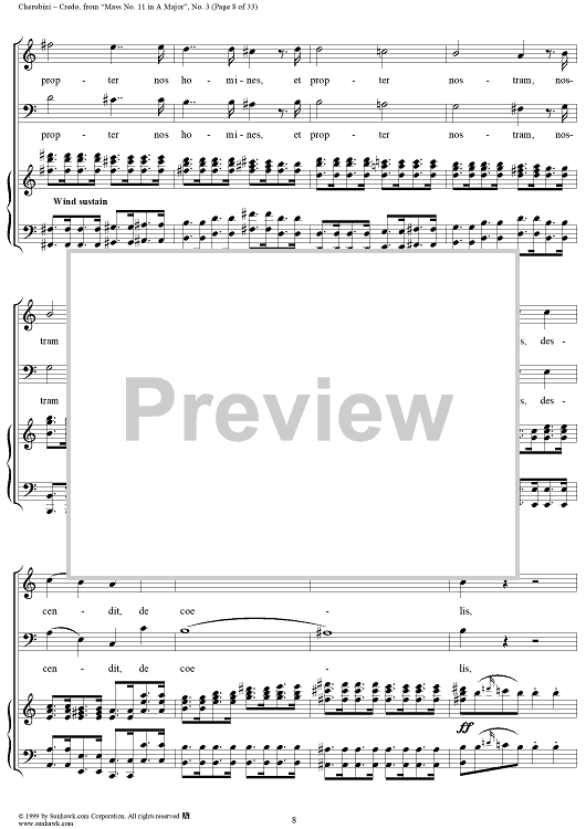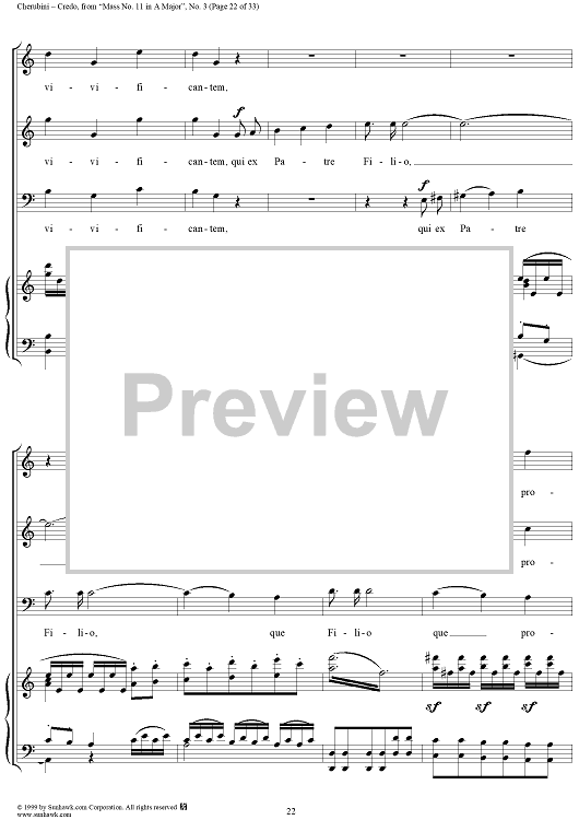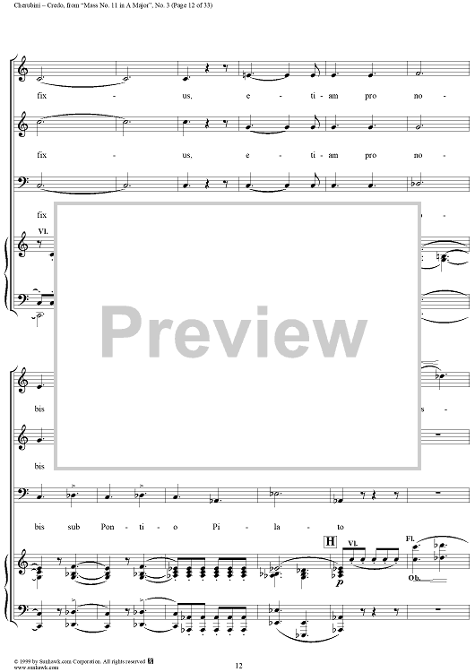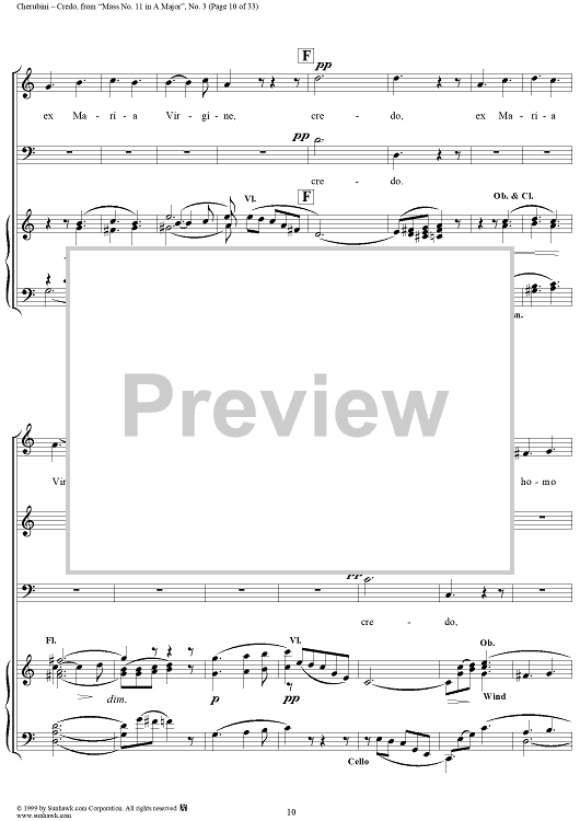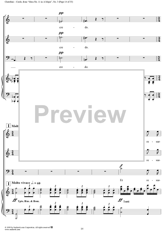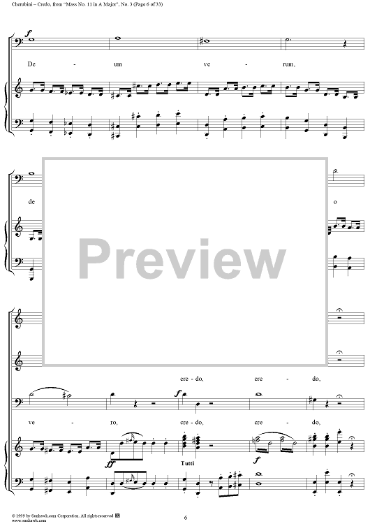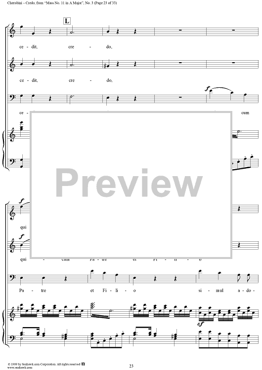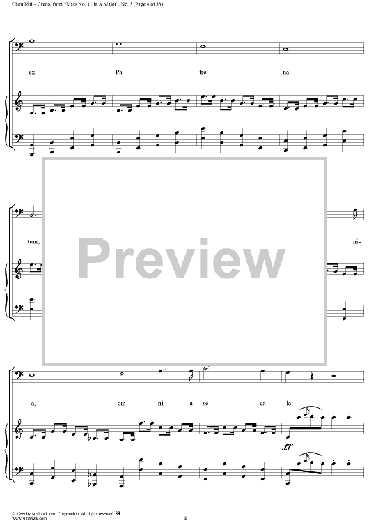 Digital Sheet Music for Credo - No. 4 from "Mass No. 11 in A major" by Luigi Cherubini scored for Vocal Score; id:272964