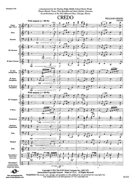 Digital Sheet Music for Credo - Score by William Owens scored for Concert Band; id:442112