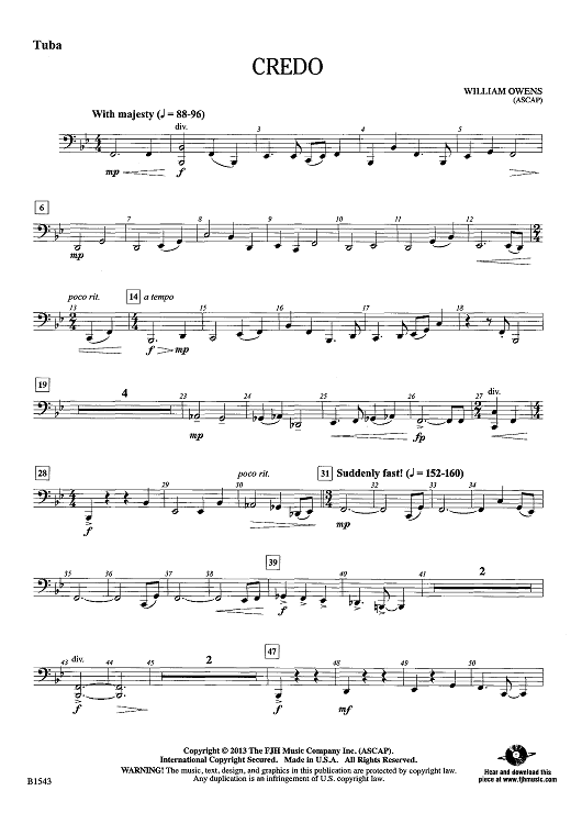 Digital Sheet Music for Credo - Tuba by William Owens scored for Concert Band; id:442133