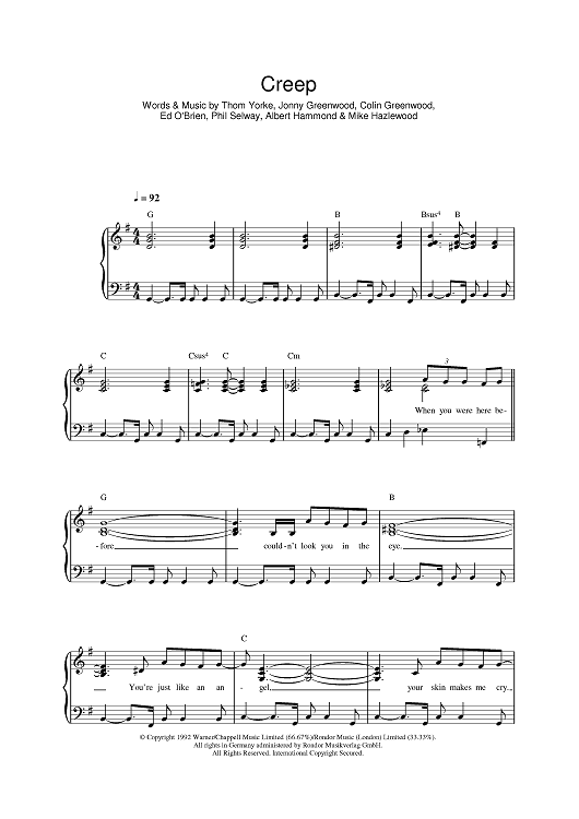 Digital Sheet Music for Creep by Albert Hammond, Coz, Radiohead, Jonny Greenwood, Mike Hazlewood, Ed O'Brien, Phil Selway, Thom Yorke scored for Piano/Vocal/Chords; id:396293