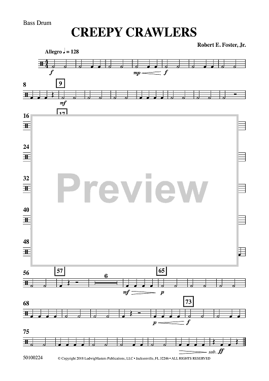 Digital Sheet Music for Creepy Crawlers - Bass Drum by Robert E. Foster, Jr. scored for Concert Band; id:507184