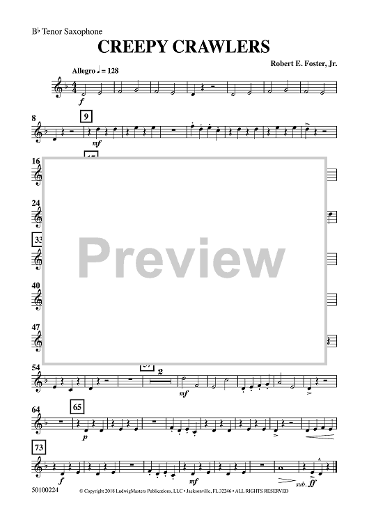 "Creepy Crawlers - Bb Tenor Saxophone" Sheet Music by Robert E. Foster, Jr.