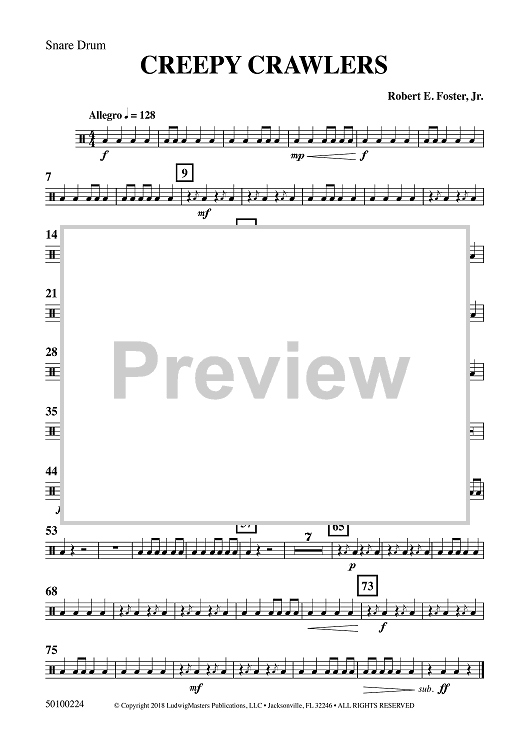 "Creepy Crawlers - Snare Drum" Sheet Music by Robert E. Foster, Jr.