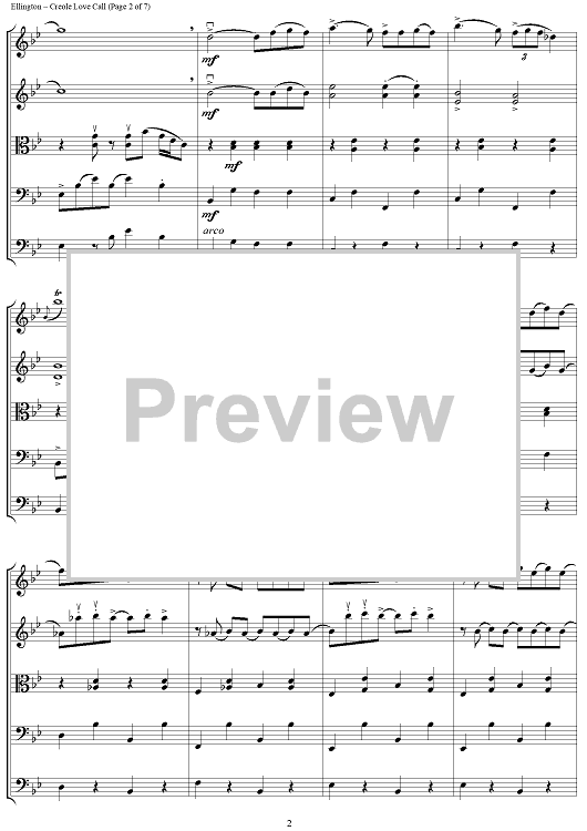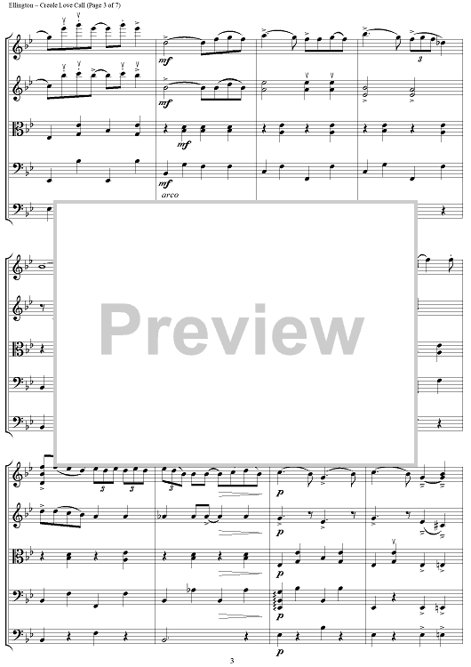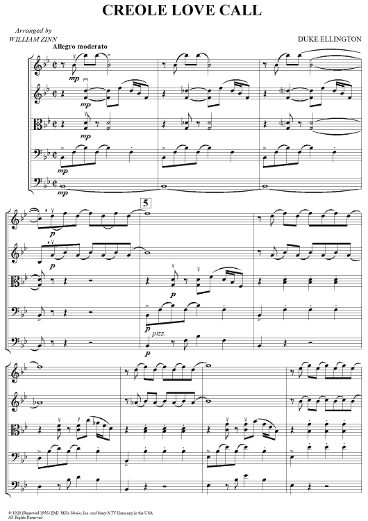 Digital Sheet Music for Creole Love Call - Score by Duke Ellington, William Zinn scored for String Ensemble; id:449625