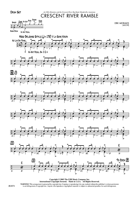 Digital Sheet Music for Crescent River Ramble - Drum Set by Erik Morales scored for Jazz Ensemble; id:455772
