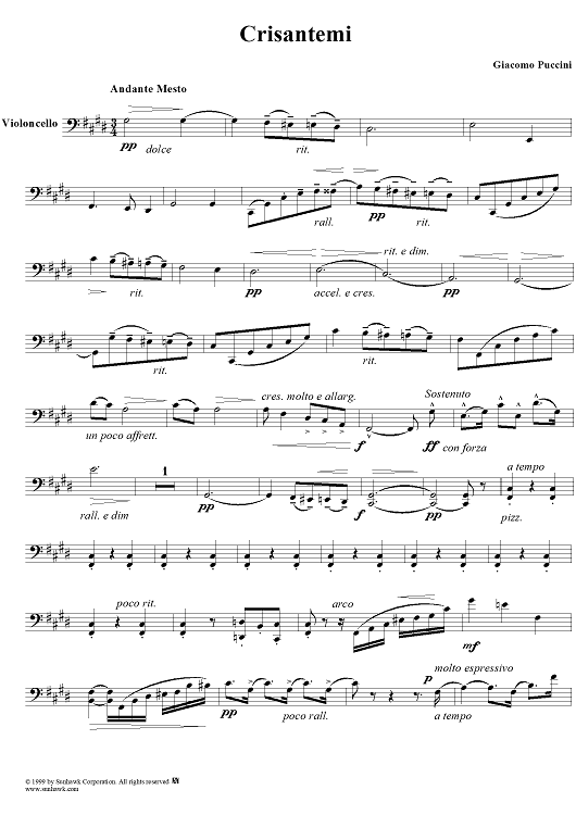 "Crisantemi - Cello" Sheet Music by Giacomo Puccini