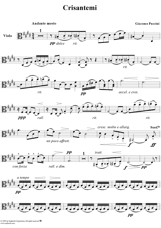 "Crisantemi - Viola" Sheet Music by Giacomo Puccini