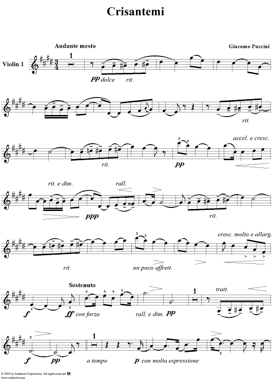 "Crisantemi - Violin 1" Sheet Music by Giacomo Puccini