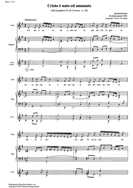 Digital Sheet Music for Cristo è nato ed umanato - Score by , Unknown Writer, Marco Sofianopulo scored for Voice/Lute or Organ; id:350542