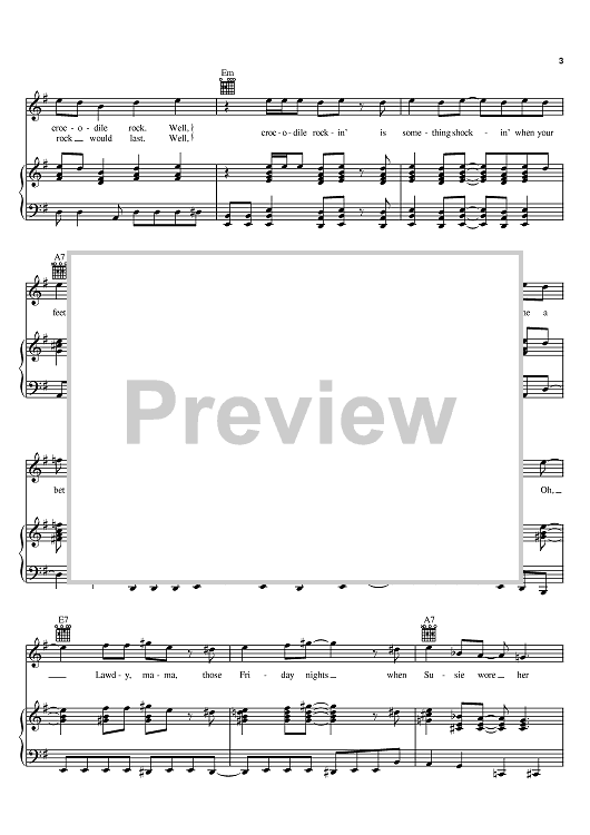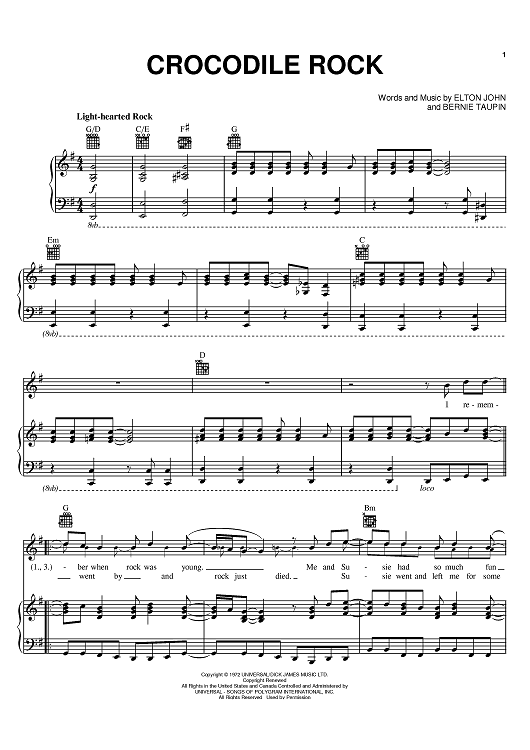 Digital Sheet Music for Crocodile Rock by Elton John, Bernie Taupin scored for Piano/Vocal/Chords; id:380590