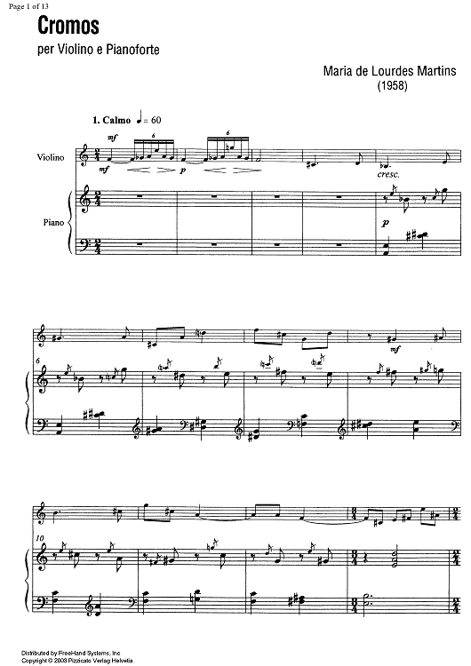 Digital Sheet Music for Cromos - Score by , Maria de Lourdes Martins scored for Violin/Piano; id:351570