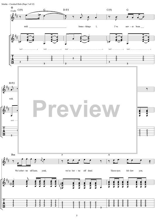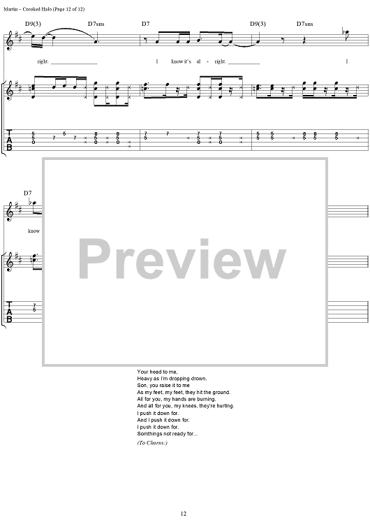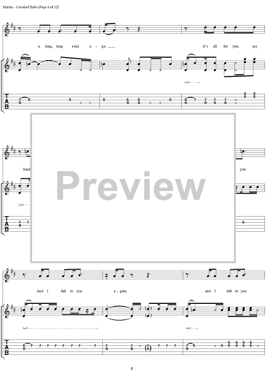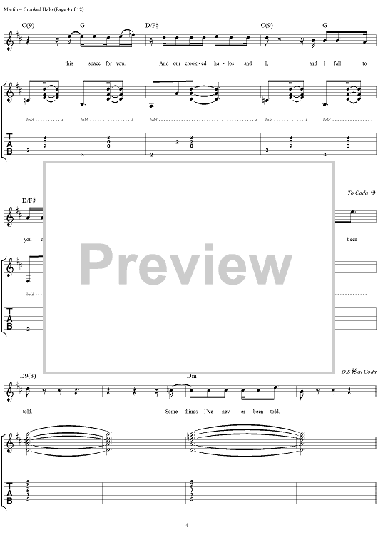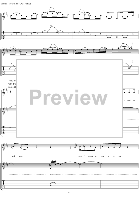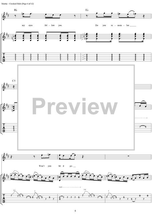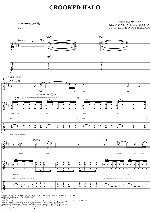 Digital Sheet Music for Crooked Halo by Kevin Martin, Bardi Martin, Peter Klett, Scott Mercado, Candlebox scored for Guitar Tab/Vocal; id:251388