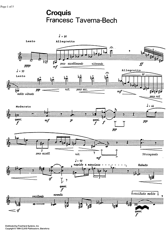 "Croquis - Guitar" Sheet Music by Francesc Taverna Bech