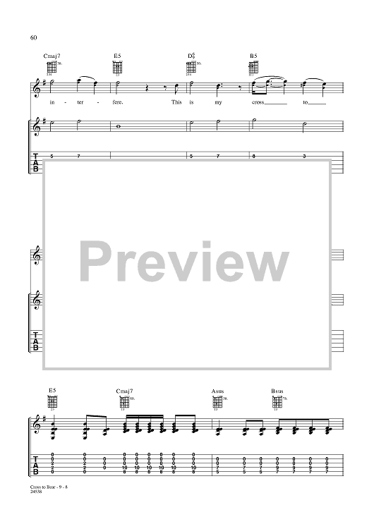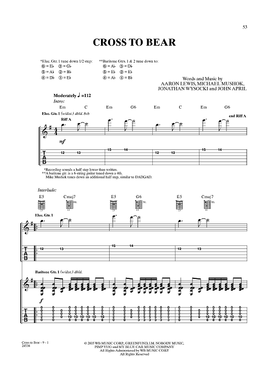 Digital Sheet Music for Cross to Bear by Aaron Lewis, Michael Mushok, Jonathan Wysocki, John April, Staind scored for Guitar Tab/Vocal; id:359990