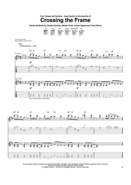 Digital Sheet Music for Crossing The Frame by Coheed and Cambria, Josh Eppard, Claudio Sanchez, Travis Stever, Michael Todd scored for Guitar Tab; id:391189