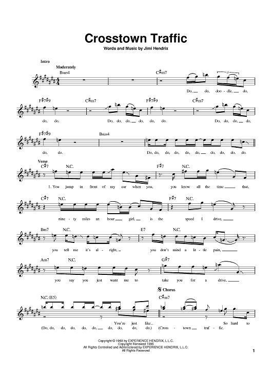 "Crosstown Traffic" Sheet Music by Jimi Hendrix