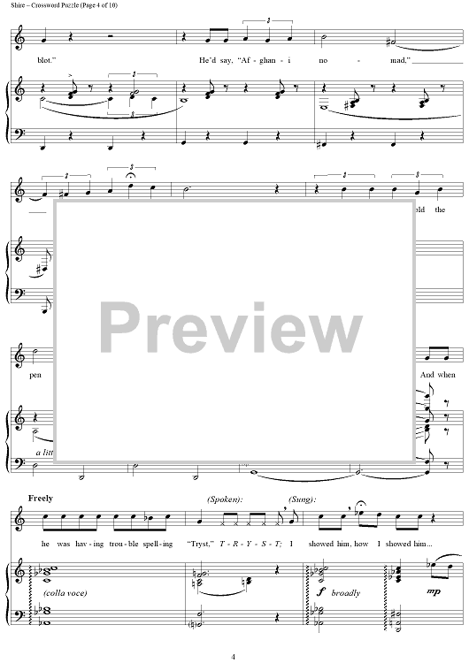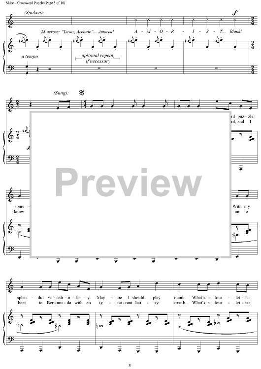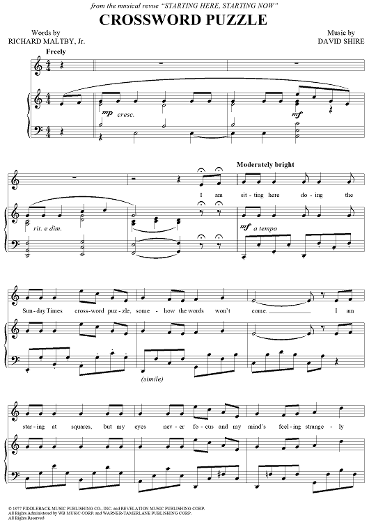 Digital Sheet Music for Crossword Puzzle by David Shire, Richard Maltby Jr. scored for Piano/Vocal; id:234625