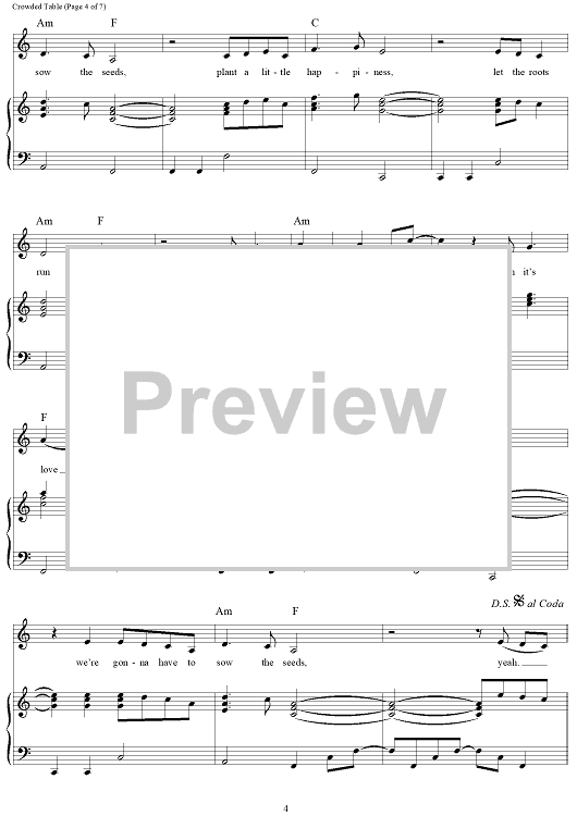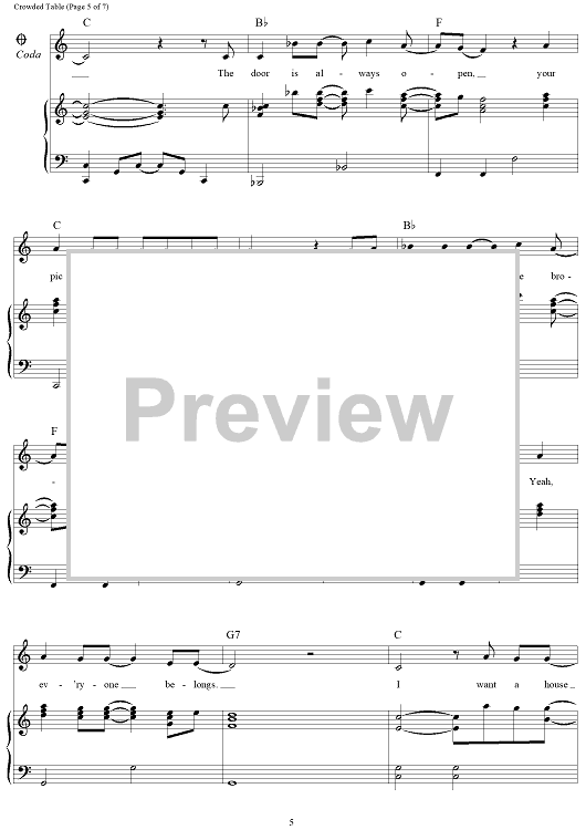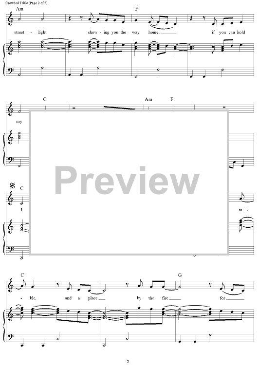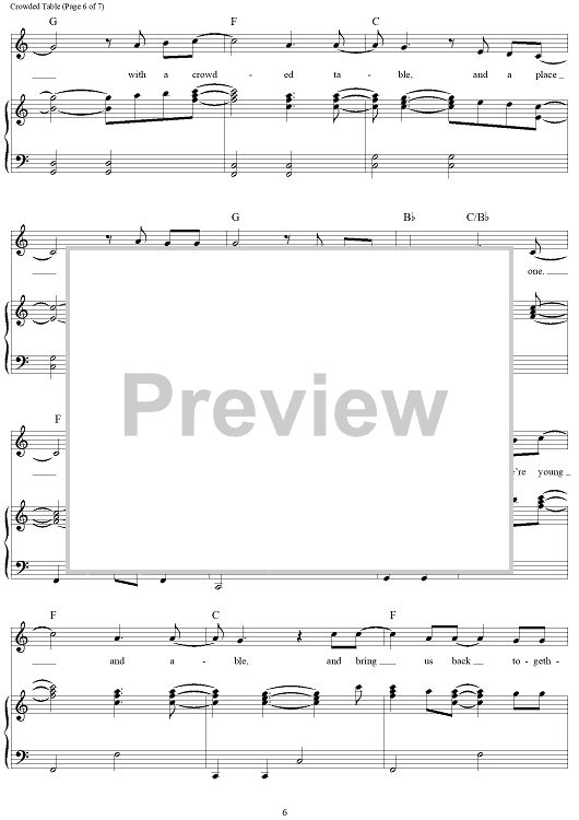 Digital Sheet Music for Crowded Table by Natalie Hemby, Brandi Carlile, Lori McKenna, The Highwomen scored for Piano/Vocal/Chords; id:467819