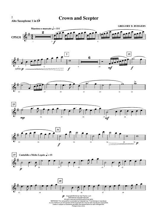 "Crown and Scepter - Alto Sax 1" Sheet Music by Gregory B. Rudgers