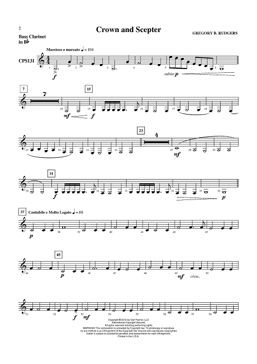 "Crown and Scepter - Bass Clarinet in Bb" Sheet Music by Gregory B. Rudgers