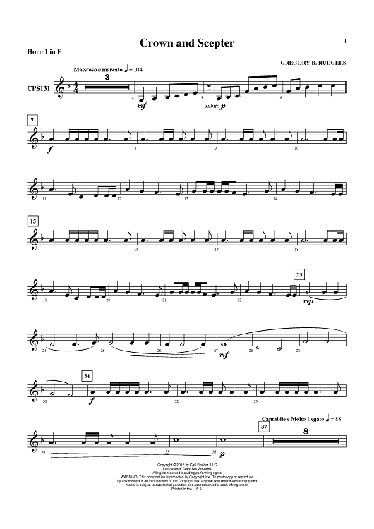 "Crown and Scepter - Horn 1 in F" Sheet Music by Gregory B. Rudgers