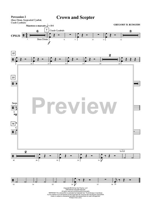 Digital Sheet Music for Crown and Scepter - Percussion 2 by Gregory B. Rudgers scored for Concert Band; id:430751