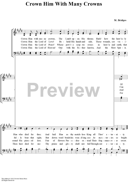 Digital Sheet Music for Crown Him With Many Crowns by George J. Elvey, Matthew Bridges, Godfrey Thring scored for SATB or Piano/Vocal; id:111415