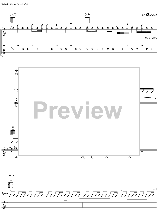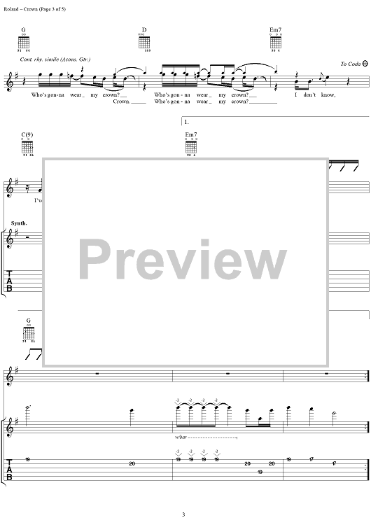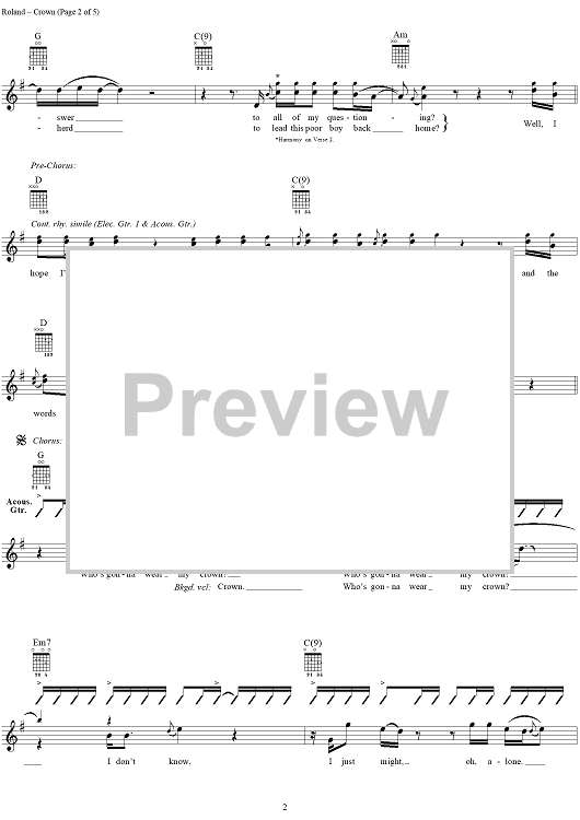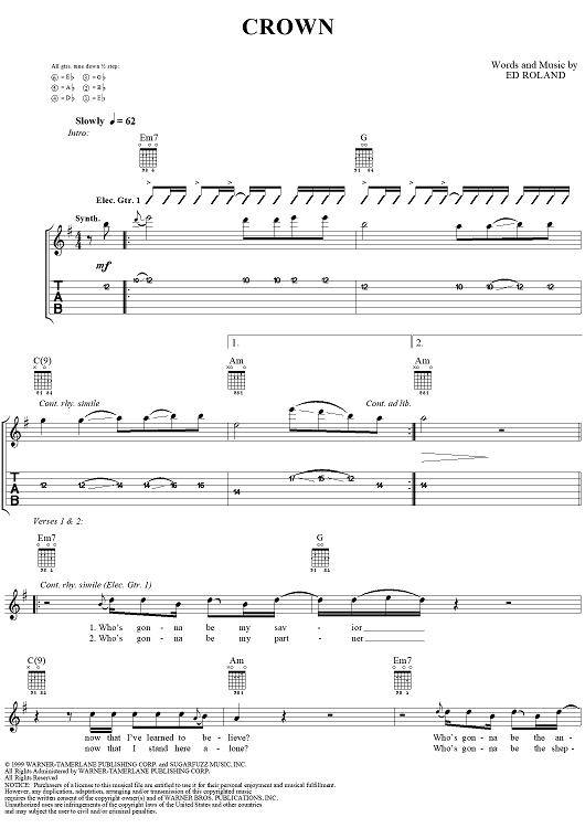 Digital Sheet Music for Crown by Collective Soul, Ed Roland scored for Guitar Tab/Vocal; id:255506