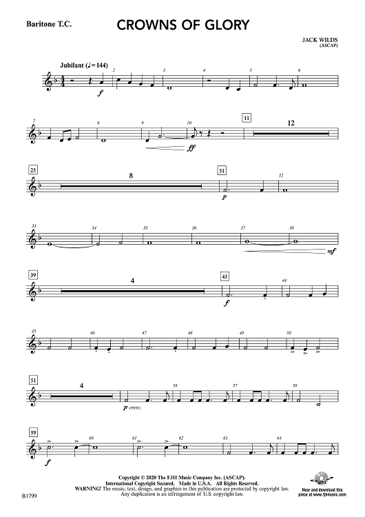 Digital Sheet Music for Crowns of Glory - Baritone TC by Jack Wilds scored for Concert Band; id:508474