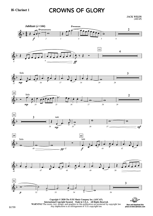 Digital Sheet Music for Crowns of Glory - Bb Clarinet 1 by Jack Wilds scored for Concert Band; id:508461