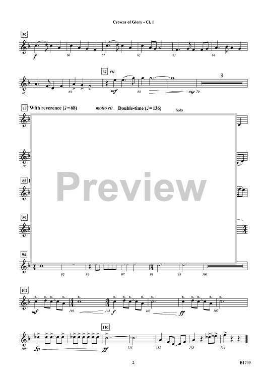 "Crowns of Glory - Bb Clarinet 1" Sheet Music by Jack Wilds