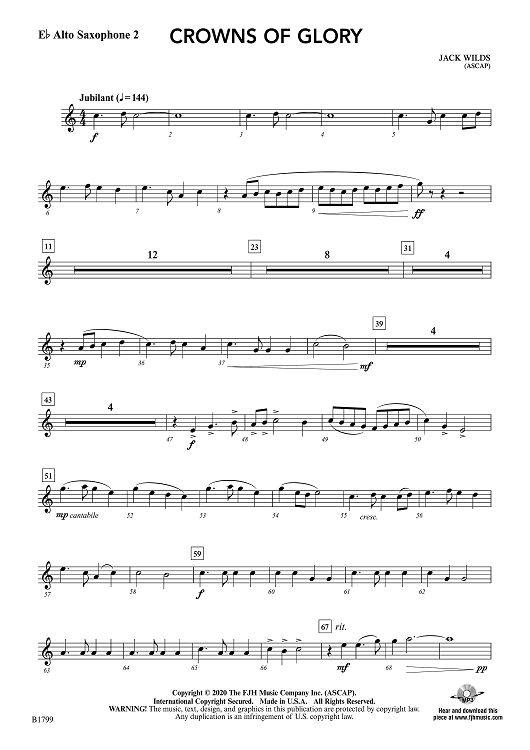 Digital Sheet Music for Crowns of Glory - Eb Alto Saxophone 2 by Jack Wilds scored for Concert Band; id:508465