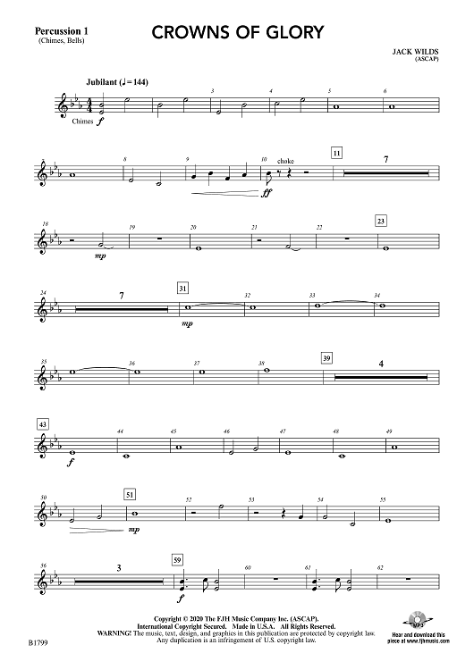 Digital Sheet Music for Crowns of Glory - Percussion 1 by Jack Wilds scored for Concert Band; id:508477