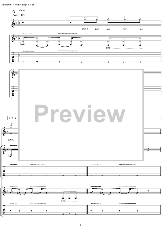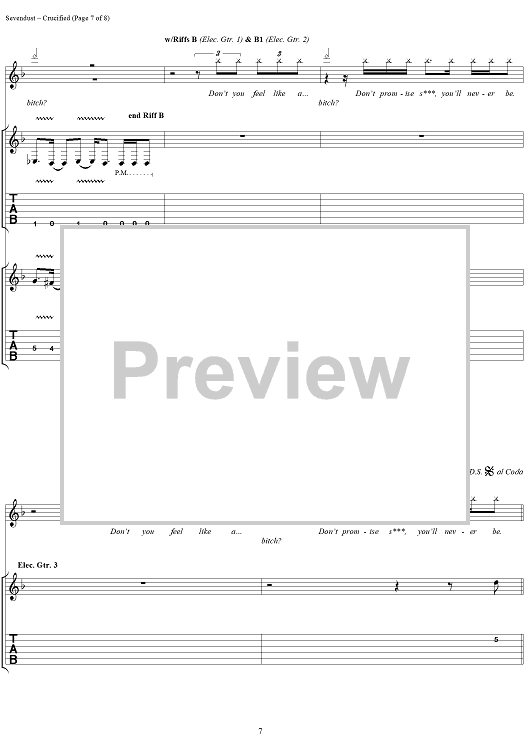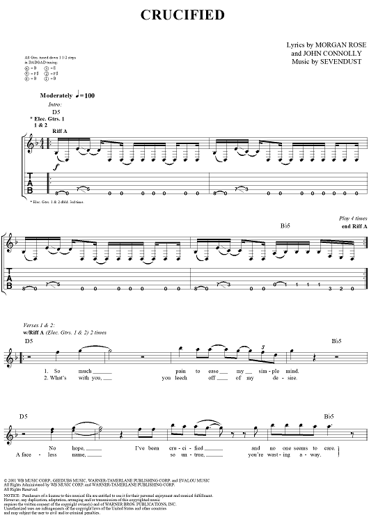 Digital Sheet Music for Crucified by Sevendust, Morgan Rose, John Connolly scored for Guitar Tab/Vocal; id:289665