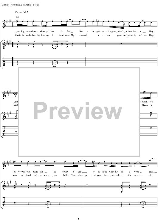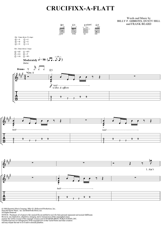 "Crucifixx-A-Flatt" Sheet Music by ZZ Top
