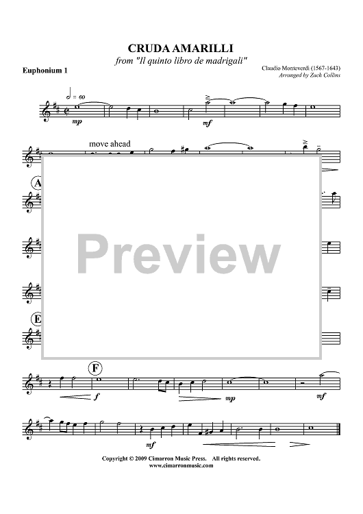 "Cruda Amarilli - Euphonium 1" Sheet Music by Claudio Monteverdi