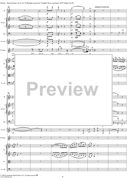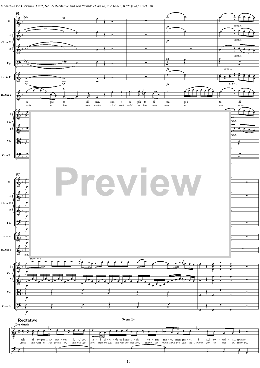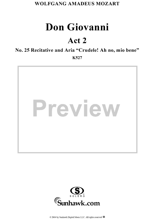 Digital Sheet Music for "Crudele? Ah nò, mio bene!", No. 25 from "Don Giovanni", Act 2, K527 - Full Score by Wolfgang Amadeus Mozart scored for Voice and Orchestra; id:291936