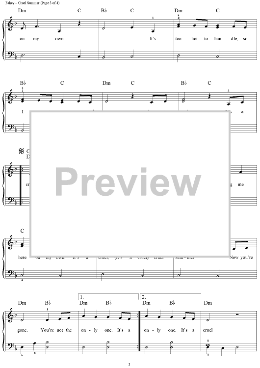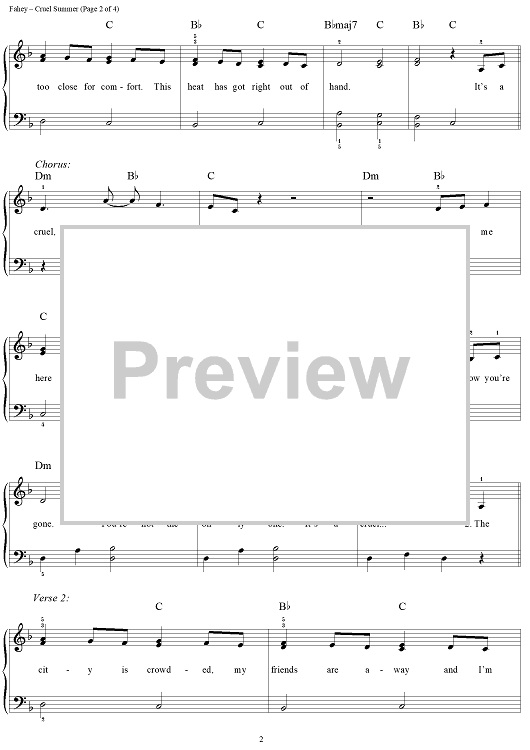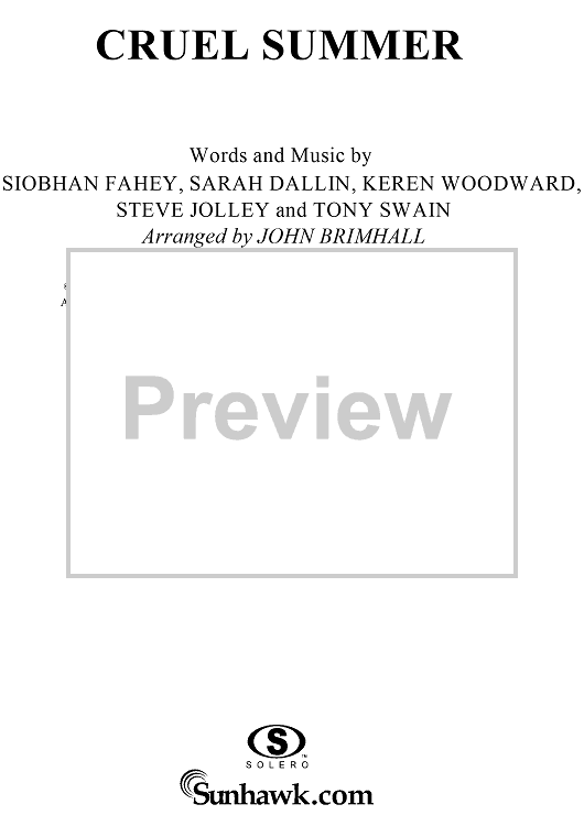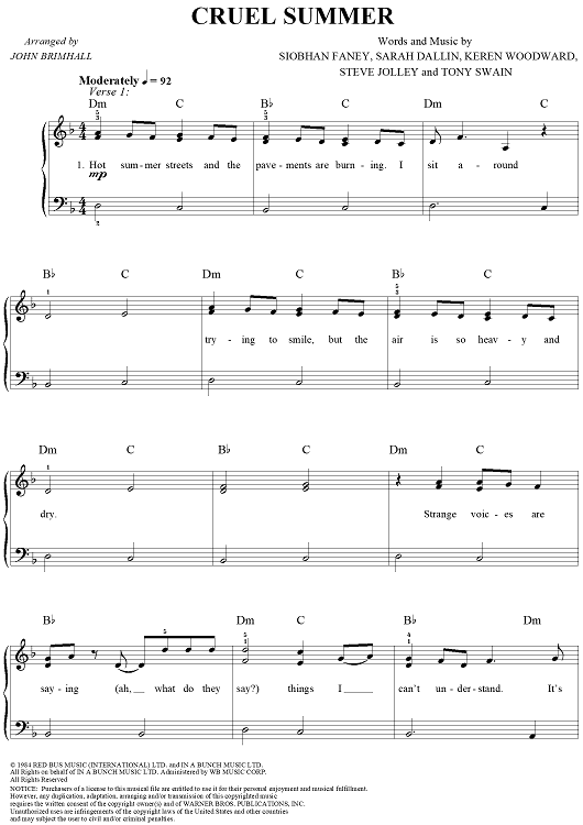 Digital Sheet Music for Cruel Summer by Siobhan Fahey, Keren Woodward, Tony Swain, Bananarama, Ace of Base, Sarah Dallin, Steve Jolley, John Brimhall scored for Easy Piano/Vocal; id:240592