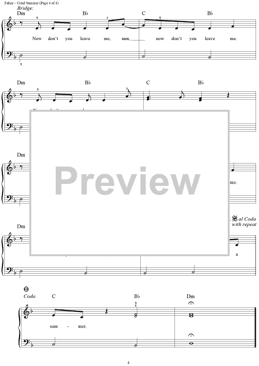 "Cruel Summer" Sheet Music by Bananarama