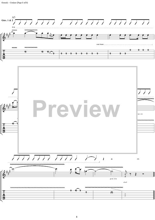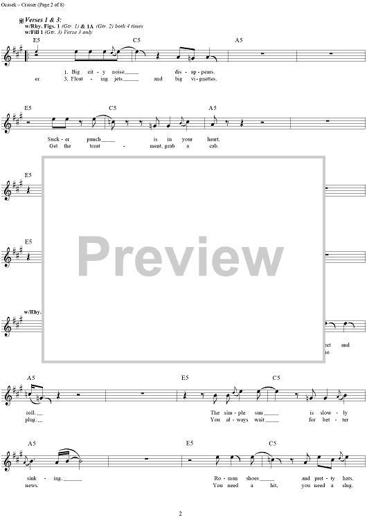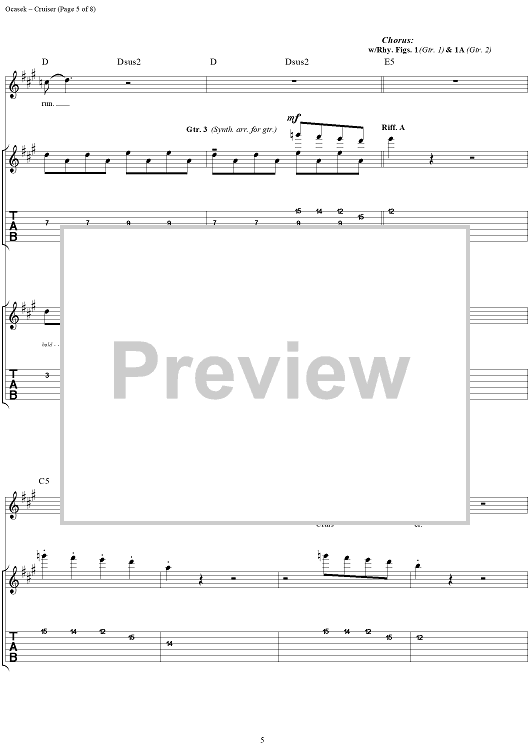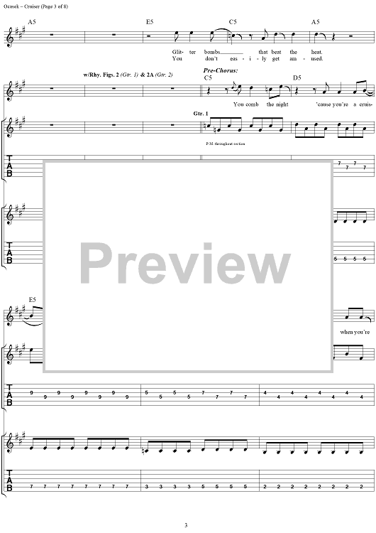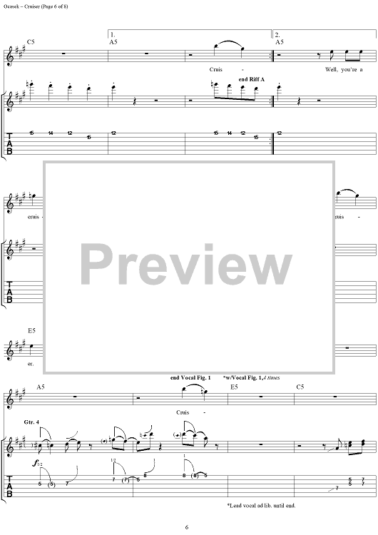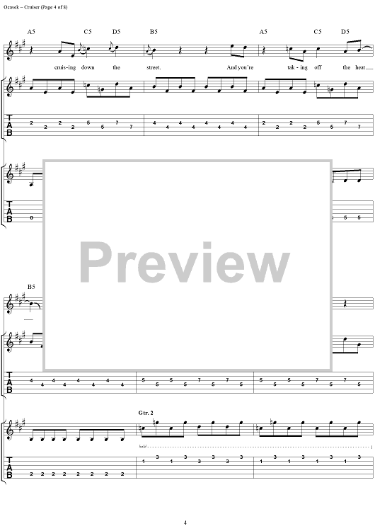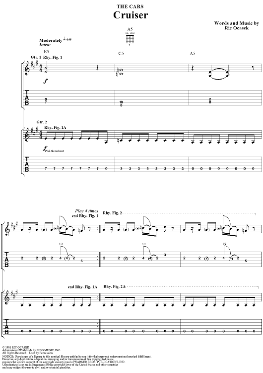 Digital Sheet Music for Cruiser by Ric Ocasek, The Cars scored for Guitar Tab/Vocal; id:109803